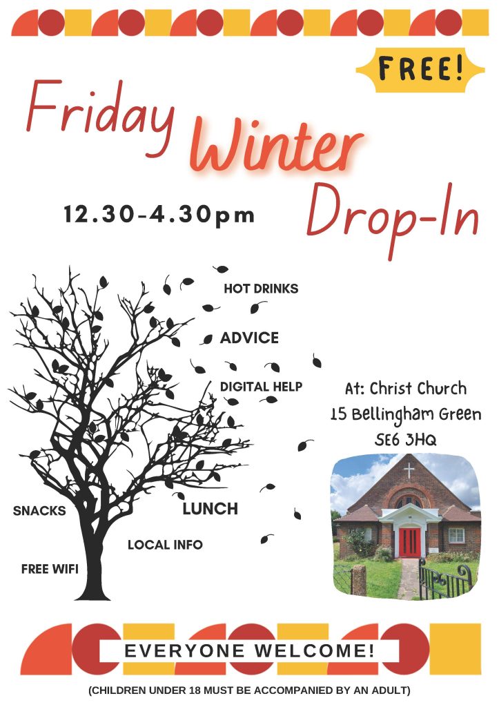 Drop-In Friday starts with a simple lunch at 12.30. There are hot drinks, biscuits, fruit, board games, and chat available throughout the afternoon. And: